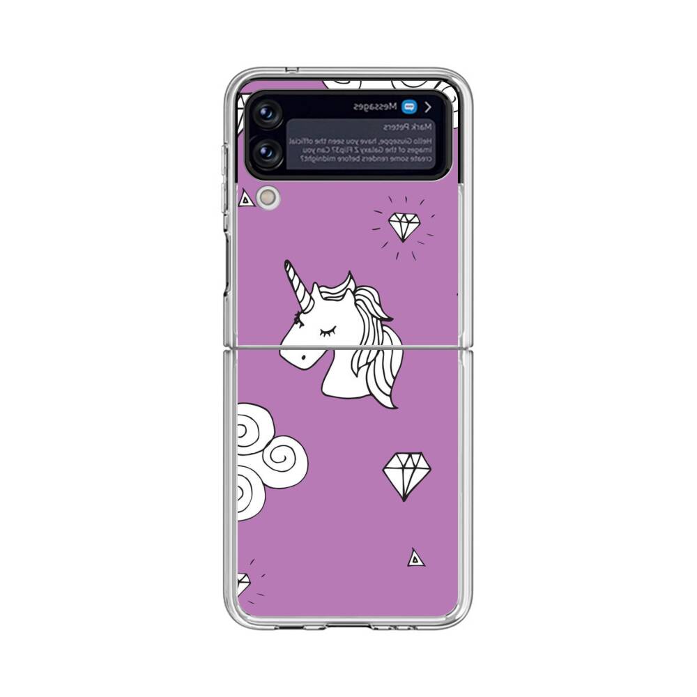 Niedliche Cartoon Einhörner Auf Wolke Samsung Galaxy Z Flip 4 Silikon Hülle● Sehr robust & langlebig