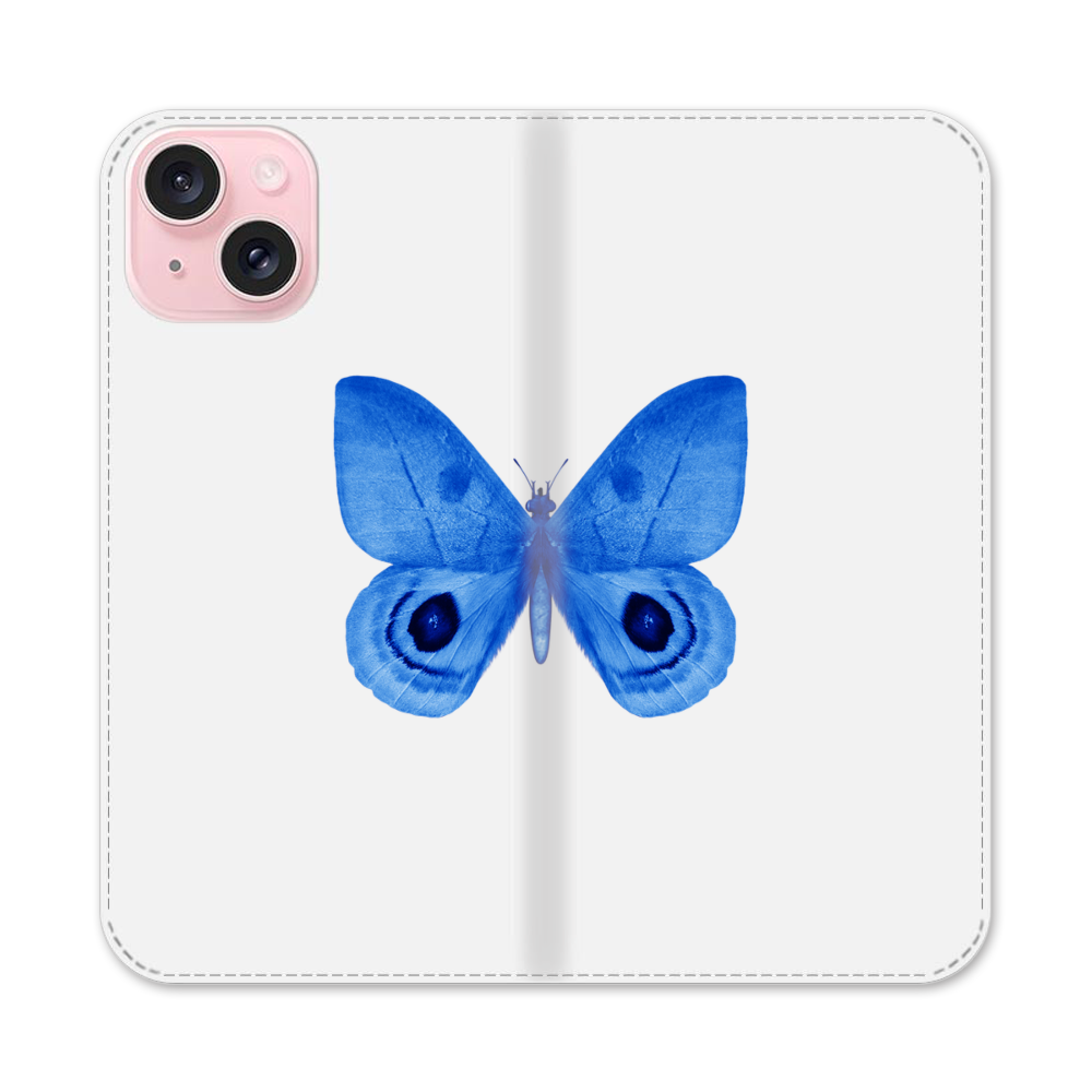Blauer Schmetterling Apple iPhone 15 Flip Case● Seitlich klappbar