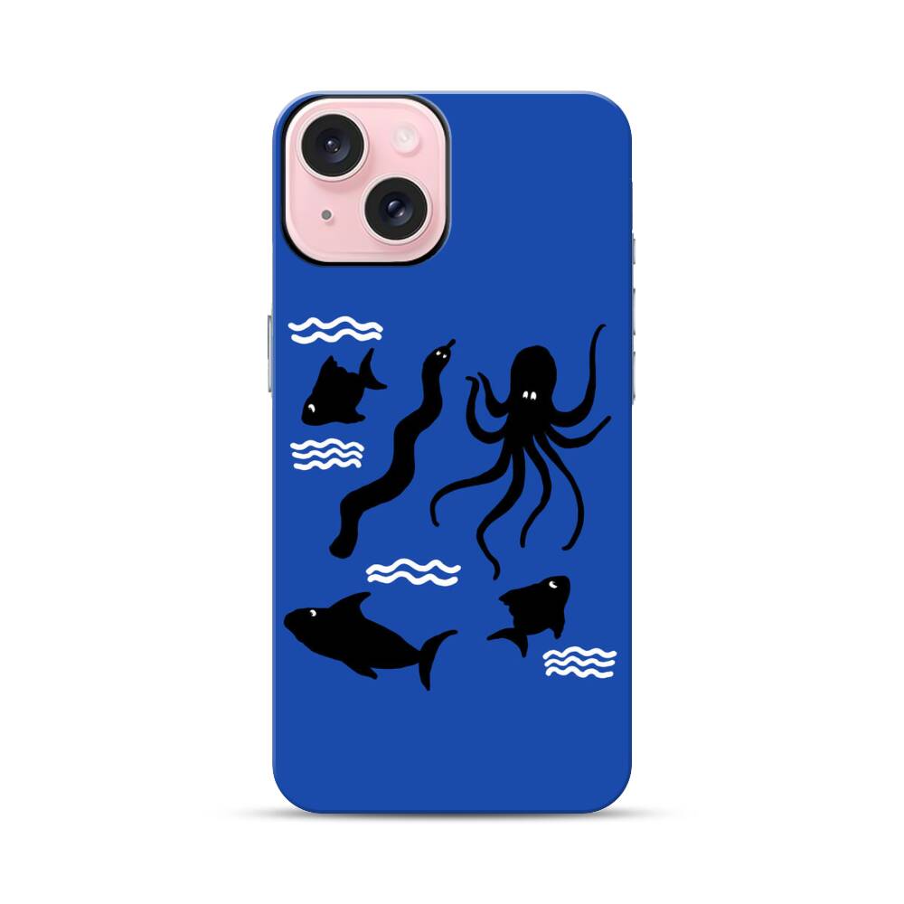 Schwarze Oktopus Apple iPhone 15 Hybrid Case● Rundum bedruckbar