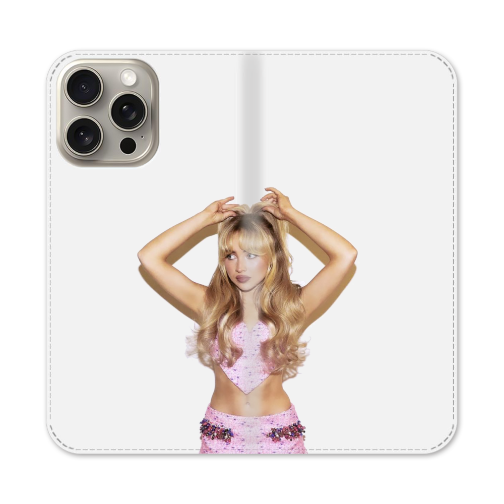 Sabrina Carpenter Pink Apple iPhone 15 Pro Max Flip Case● Seitlich klappbar
