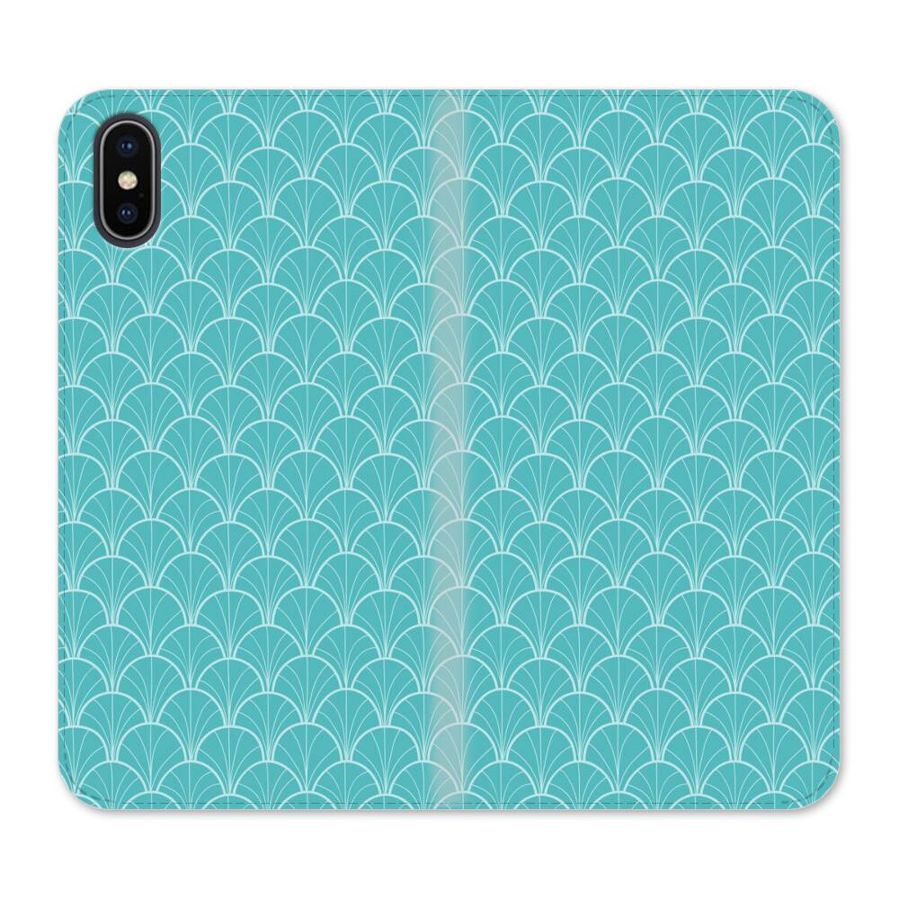 Hellblaue Fächerförmige Muster iPhone XS Max Wallet Leder Hülle● Seitlich klappbar