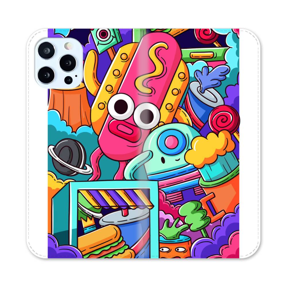 Comic Hotdog Robot Apple iPhone 12 Pro Flip Case● Seitlich klappbar