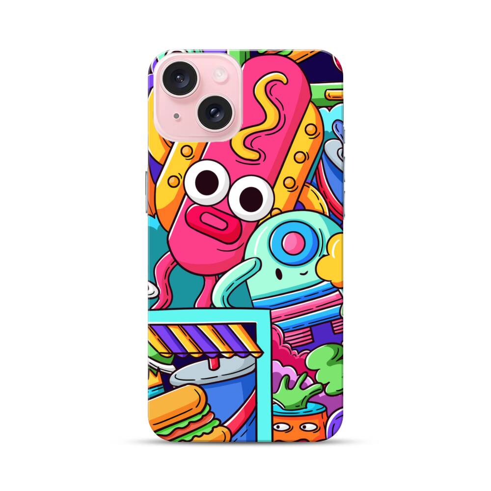 Comic Hotdog Robot Apple iPhone 15 Hülle● Rundum bedruckbar