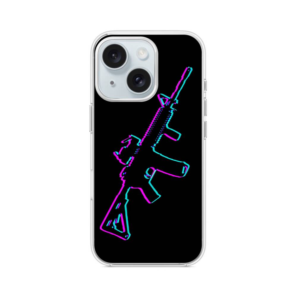 Neon Maschinegewehr iPhone 15 MagSafe‑kompatible Silikonhülle mit Kamera‑Kickstand● Sehr robust & langlebig