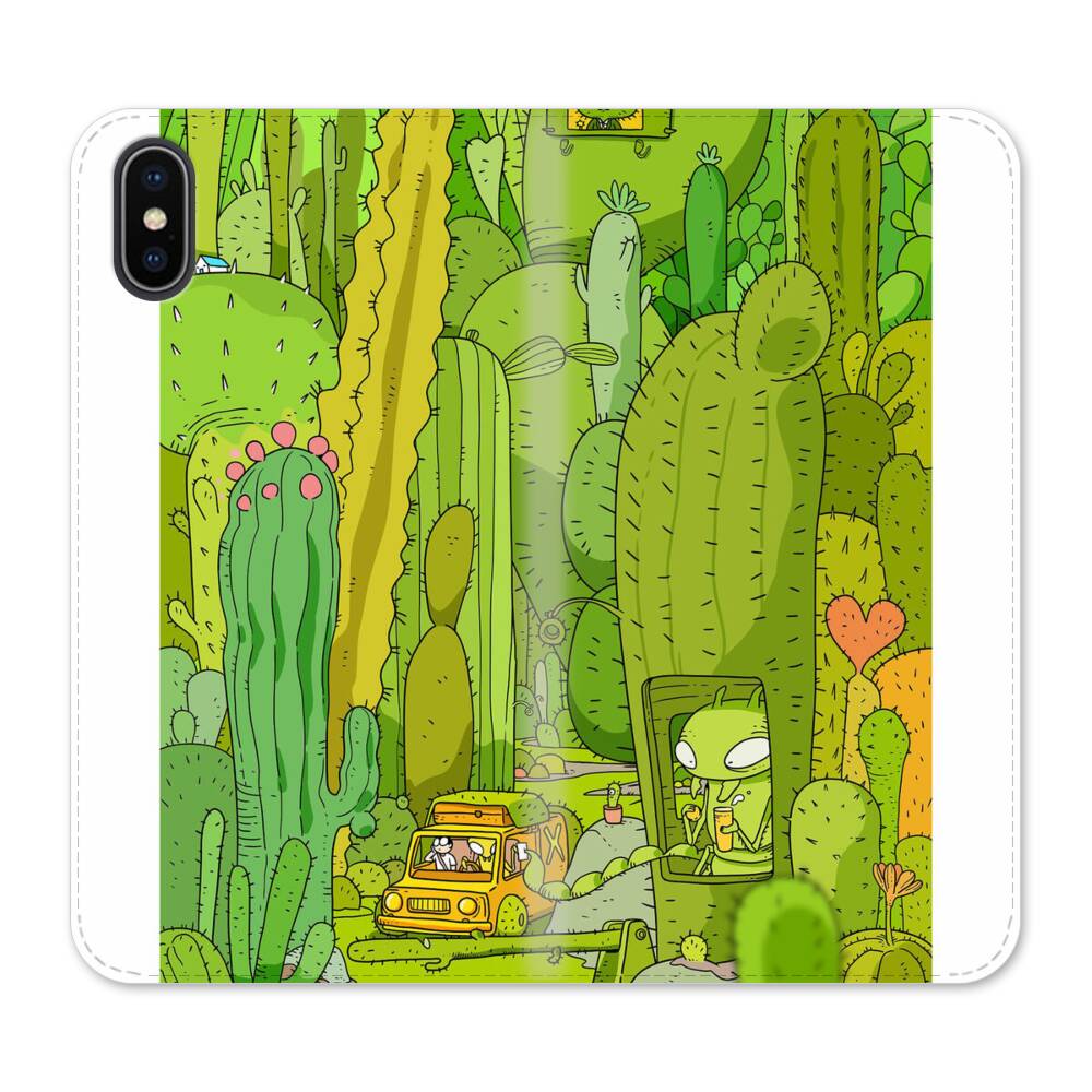 Comic Kaktusfelder iPhone XS Wallet Leder Hülle● Seitlich klappbar