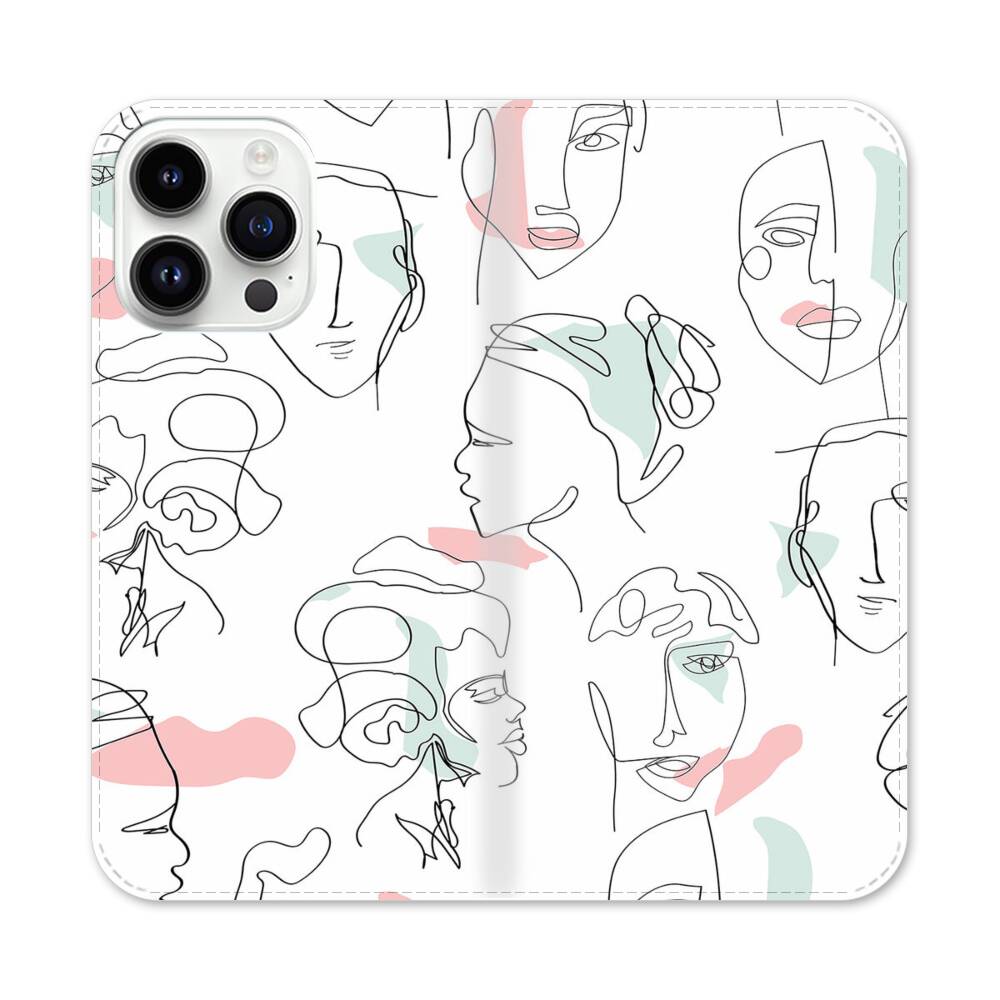 Frauen Linien Gesichter Apple iPhone 14 Pro Max Flip Case● Seitlich klappbar