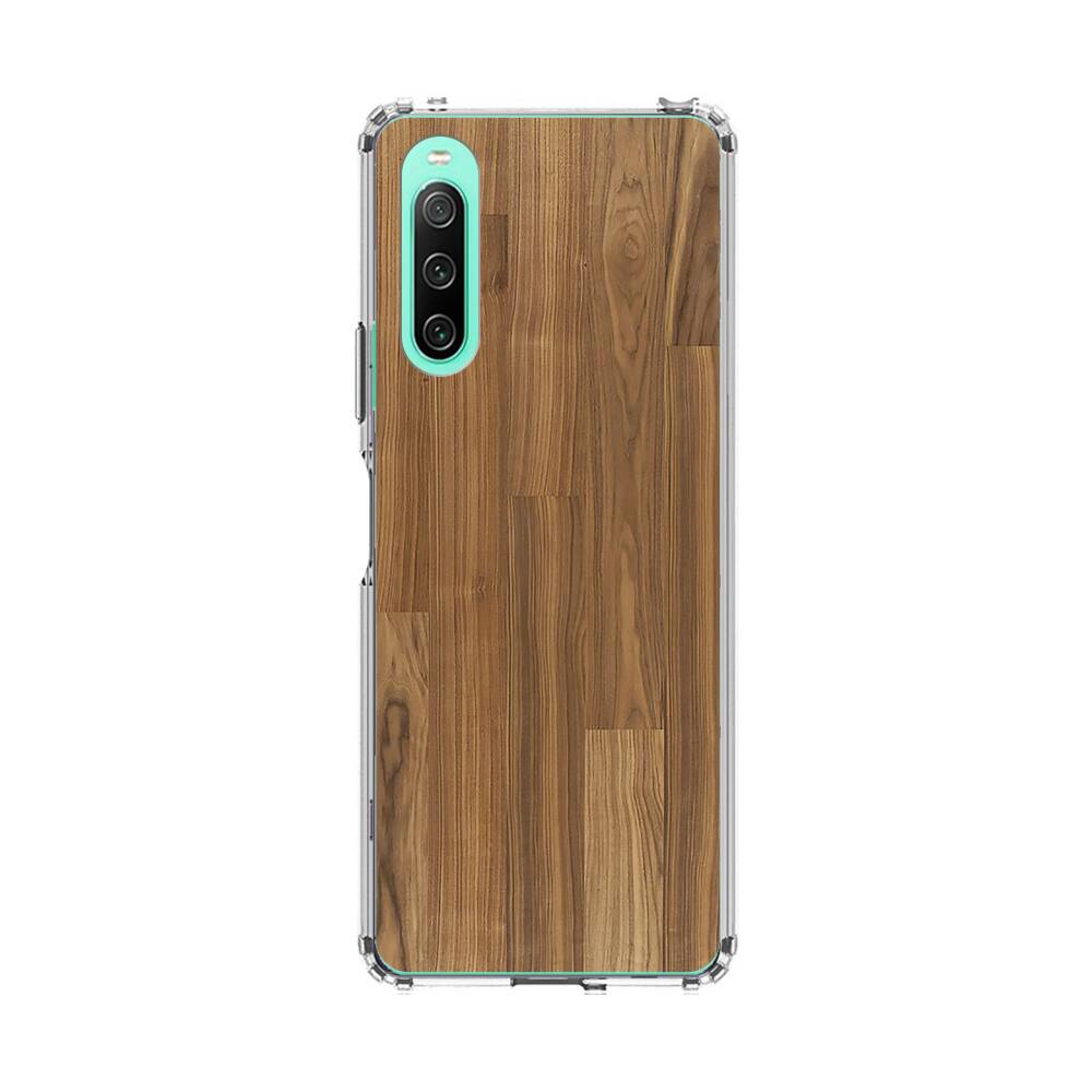 Braunes Holz Sony Xperia 10 IV Silikon Hülle● Sehr robust & langlebig