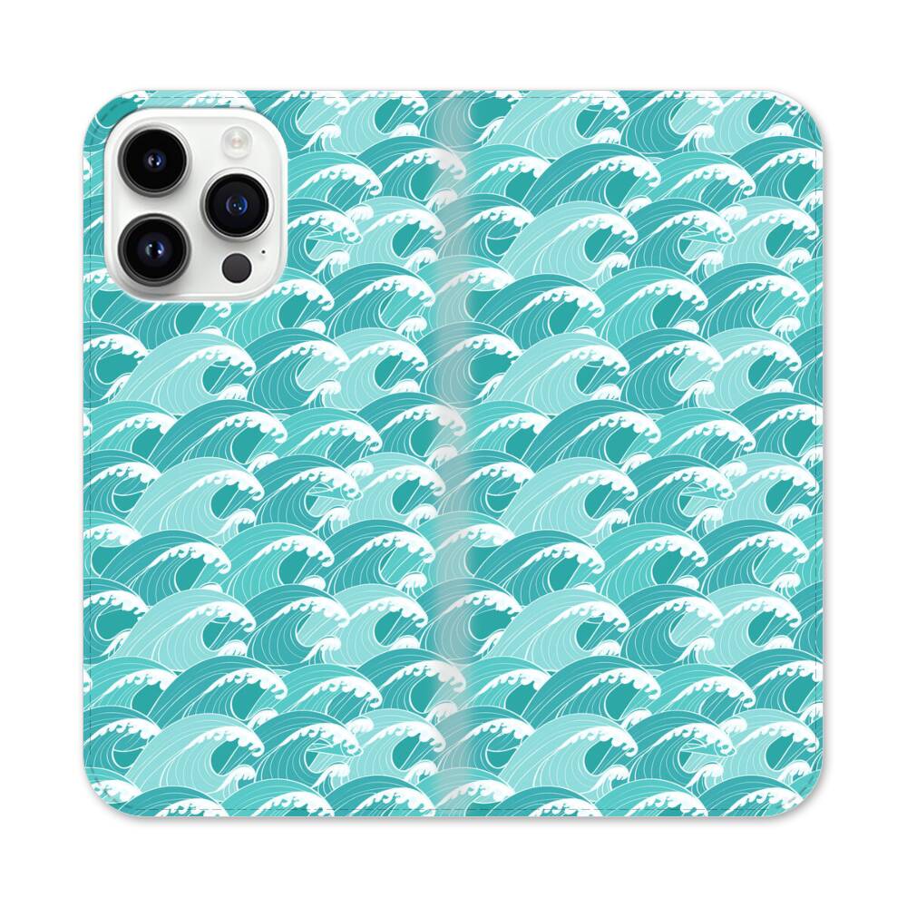 Grün Meer Welle Apple iPhone 14 Pro Max Flip Case● Seitlich klappbar