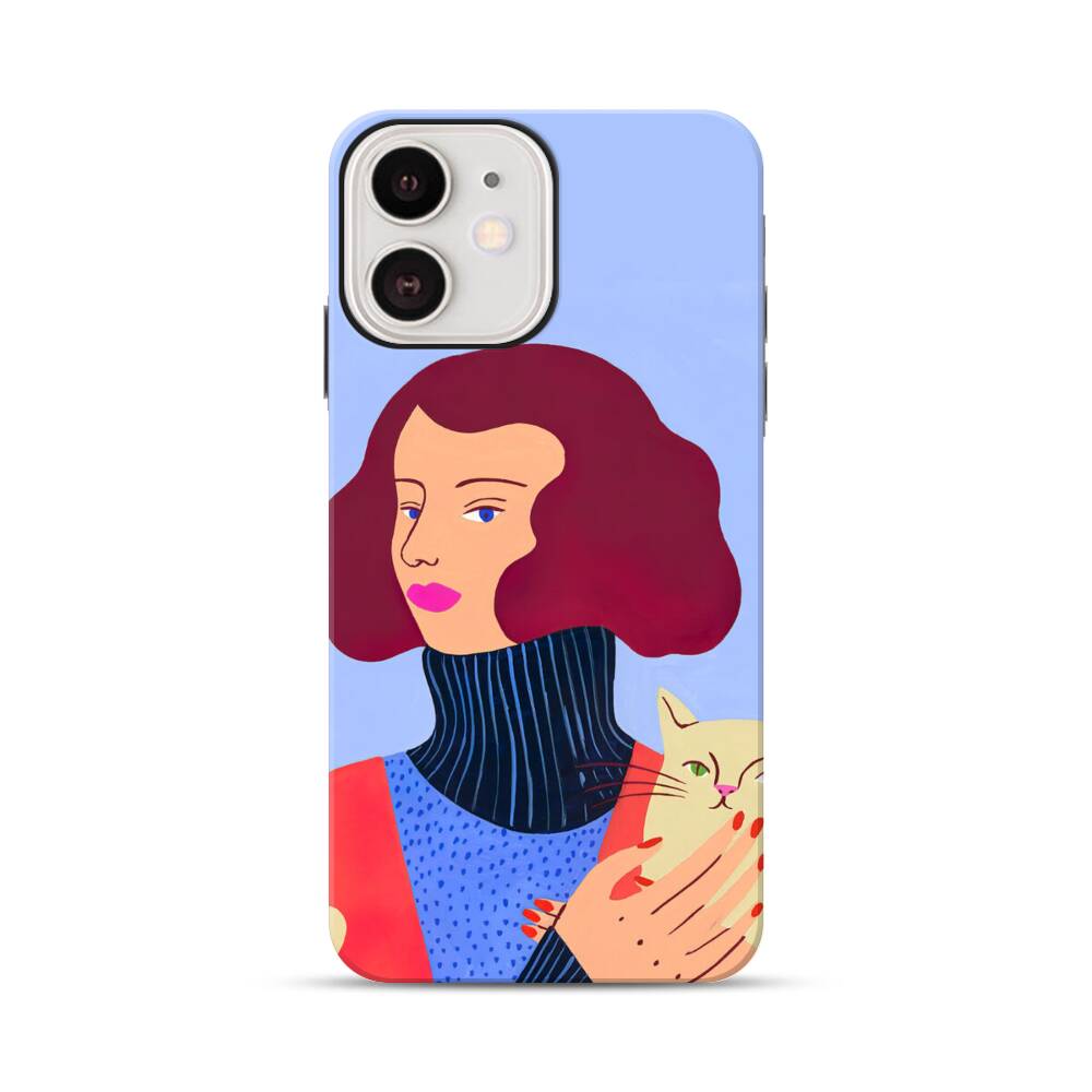 Dame mit Katze Apple iPhone 12 Hybrid Case● Rundum bedruckbar