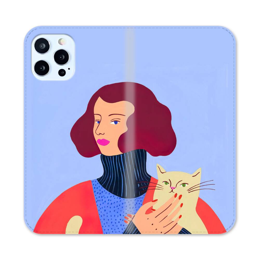 Dame mit Katze Apple iPhone 12 Pro Flip Case● Seitlich klappbar