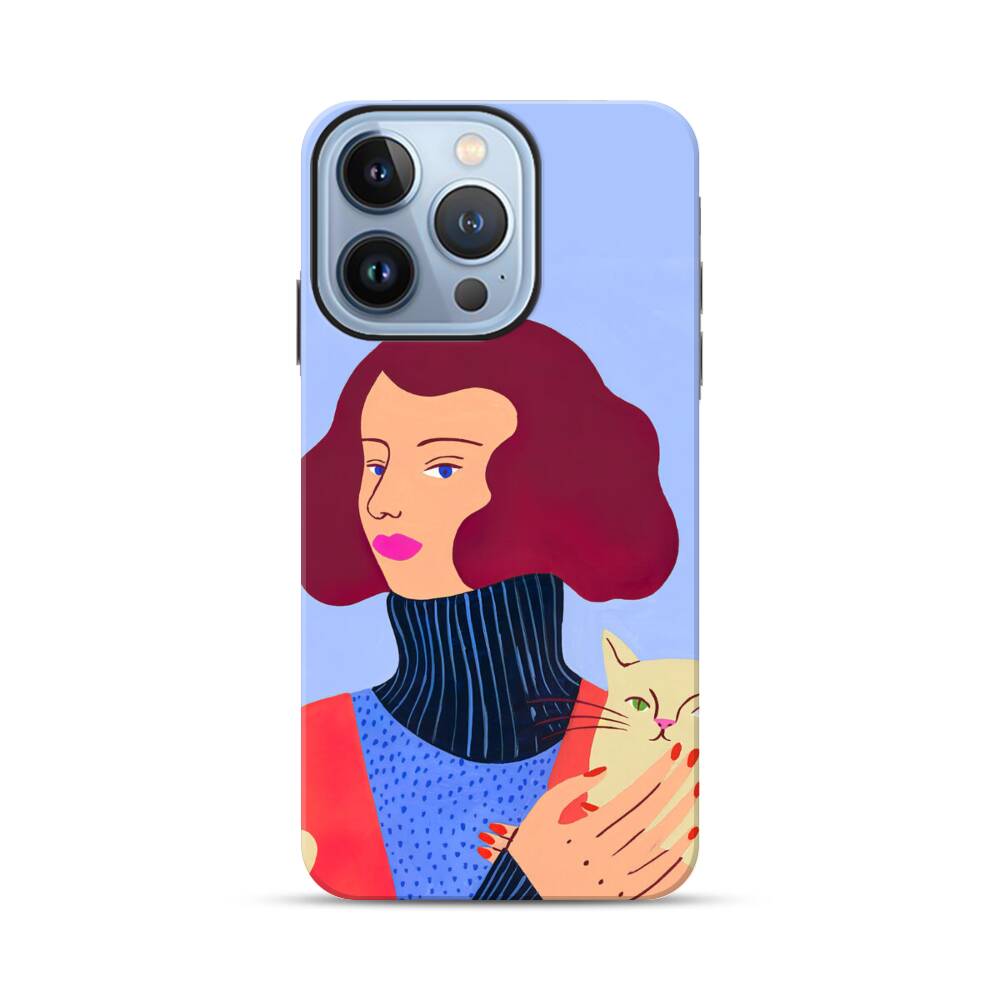 Dame mit Katze Apple iPhone 13 Pro Hybrid Case● Rundum bedruckbar
