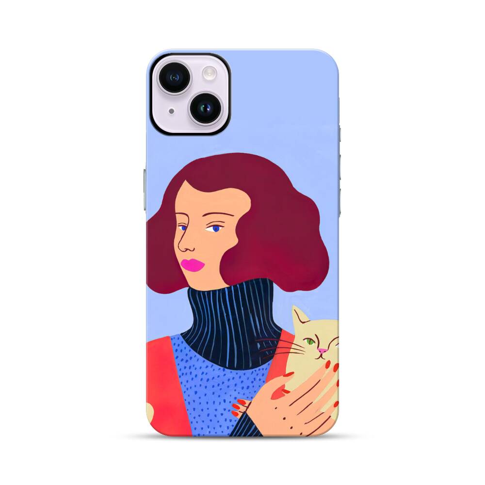 Dame mit Katze Apple iPhone 14 Plus Hybrid Case● Rundum bedruckbar