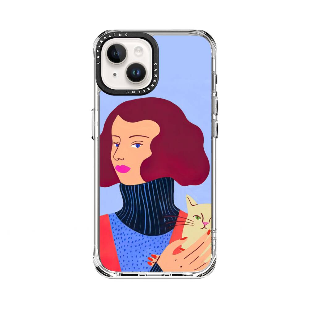 Dame mit Katze Apple iPhone 14 Silikon Hülle● Sehr robust & langlebig