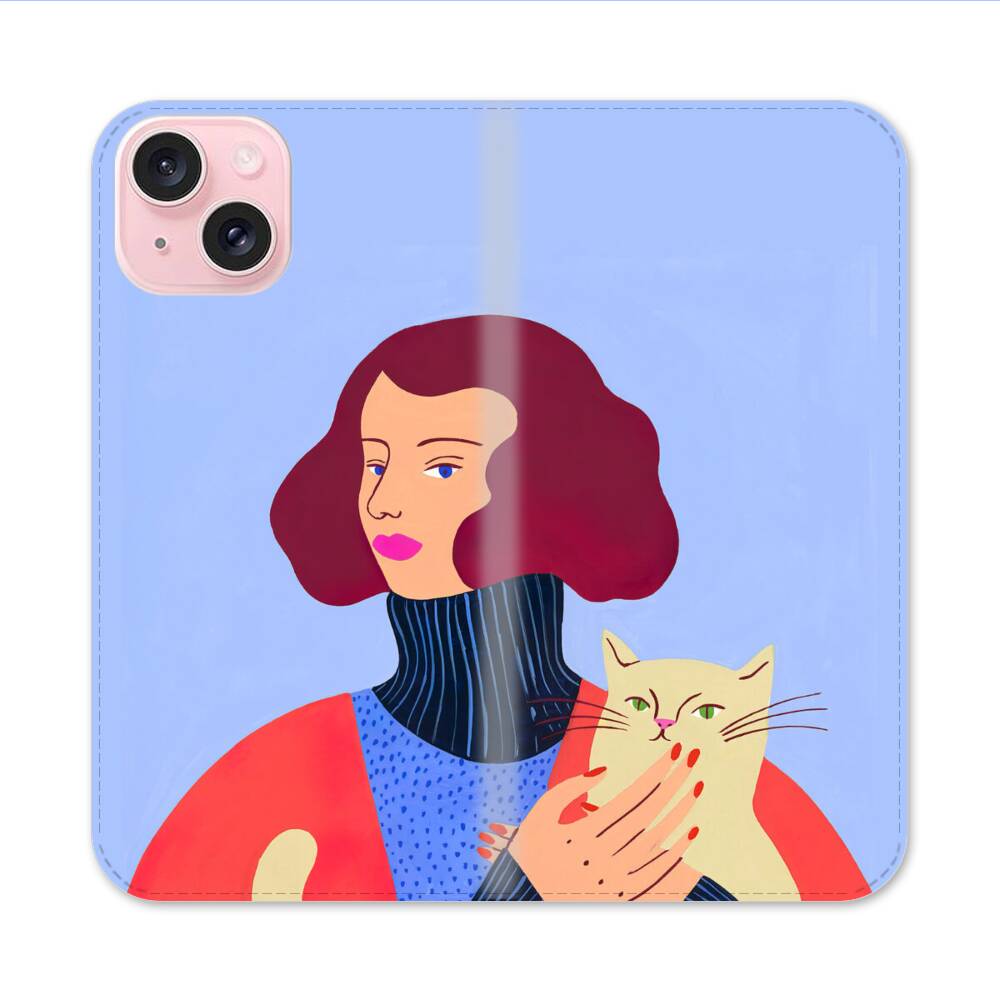 Dame mit Katze Apple iPhone 15 Flip Case● Seitlich klappbar