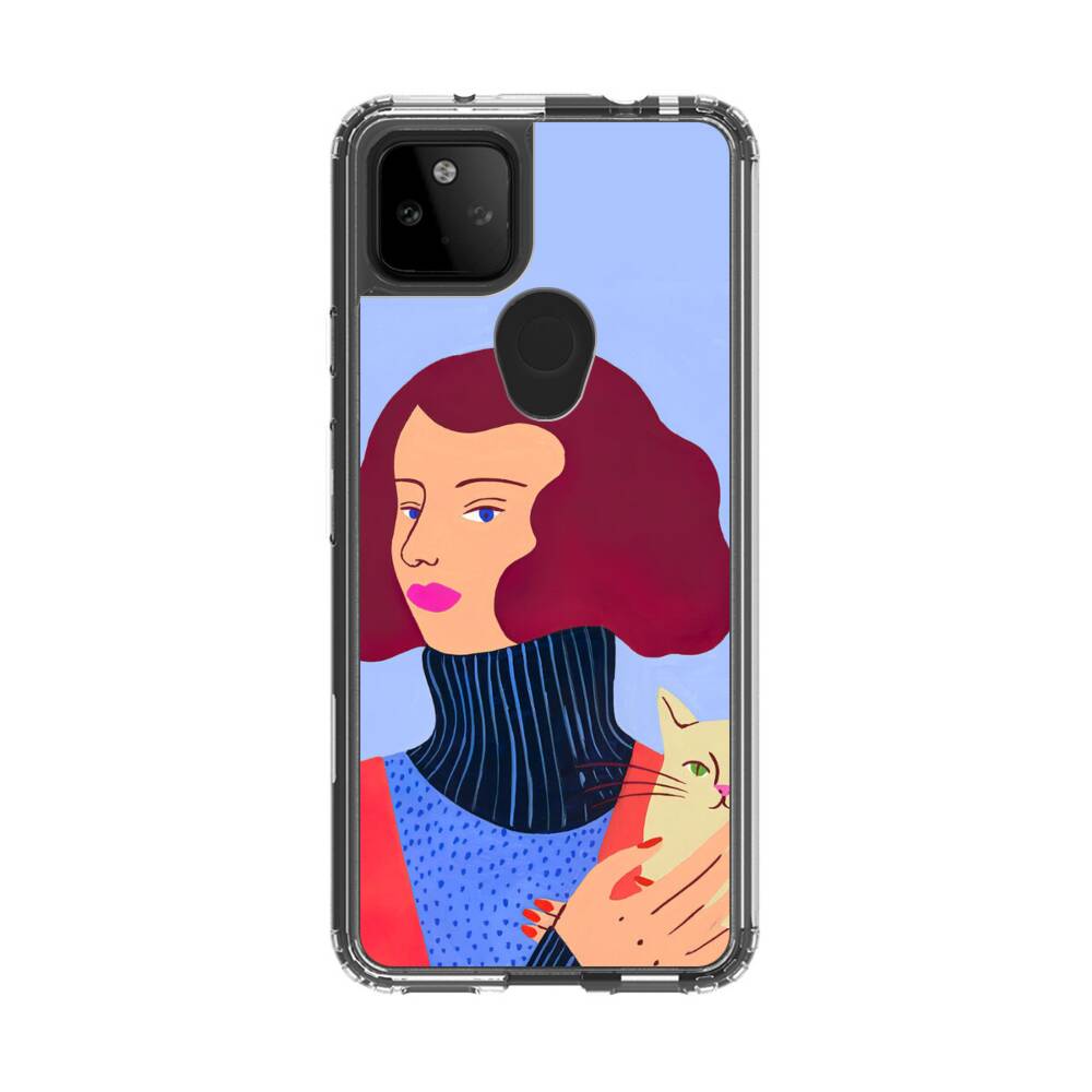 Dame mit Katze Google Pixel 5a 5G Silikon Hülle● Sehr robust & langlebig