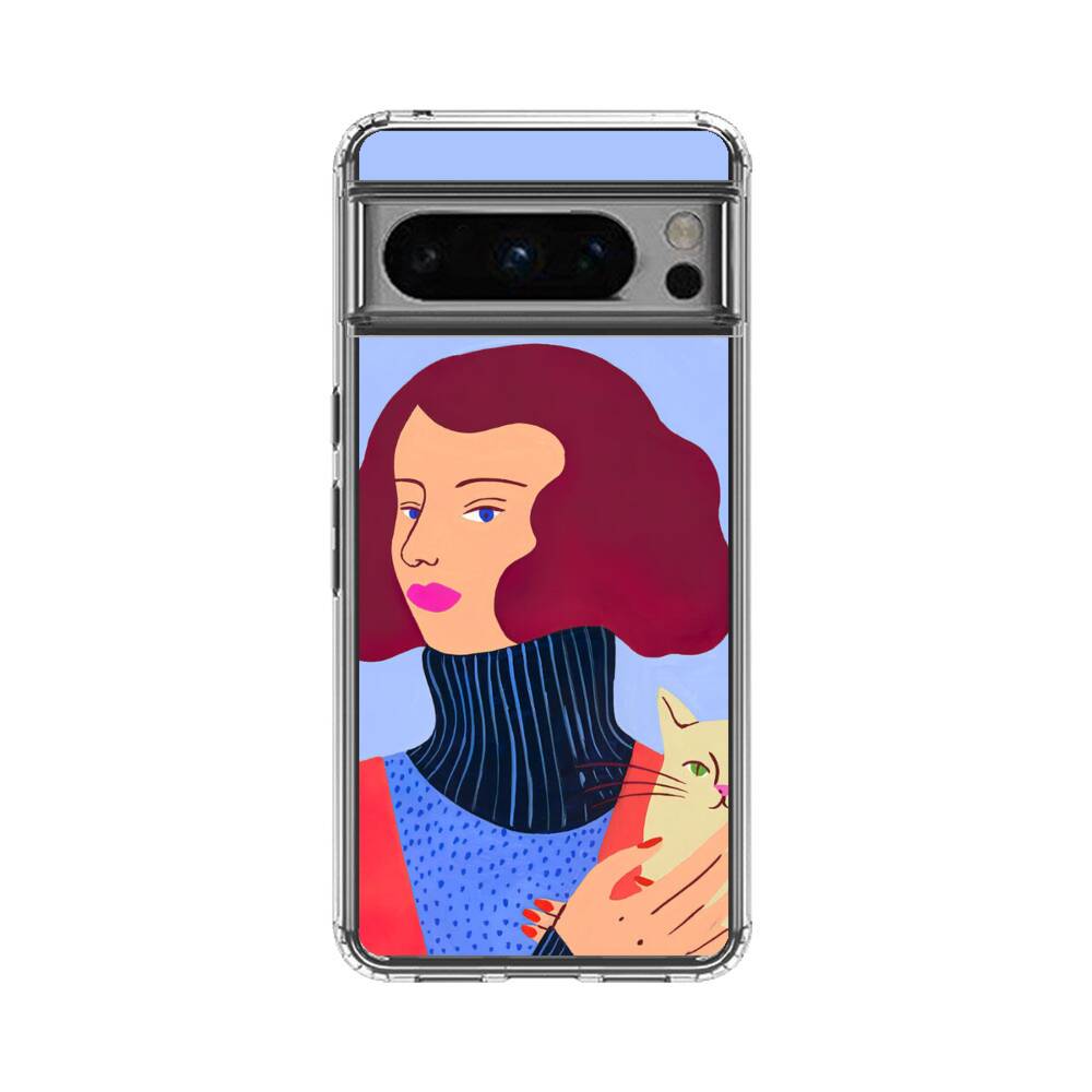 Dame mit Katze Google Pixel 8 Pro Silikon Hülle● Sehr robust & langlebig