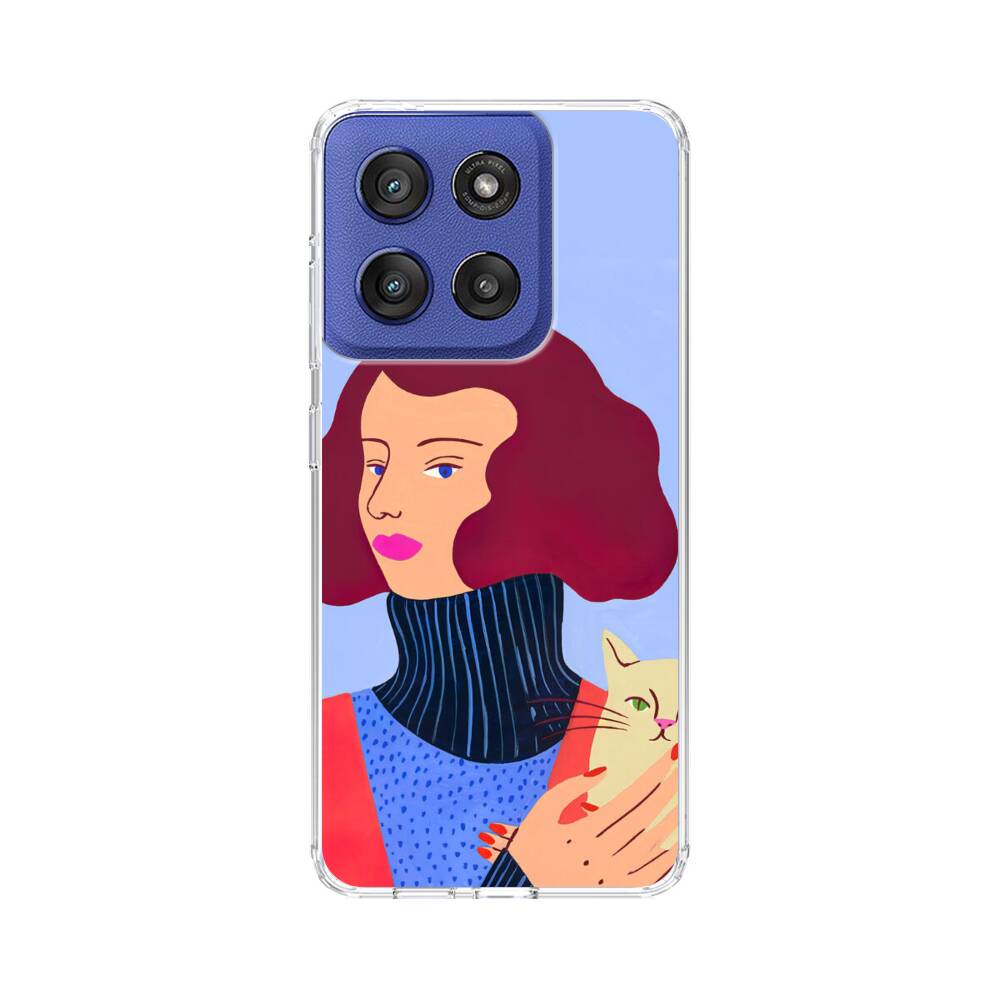 Dame mit Katze Motorola Edge 60 Stylus Silikon Hülle● Sehr robust & langlebig