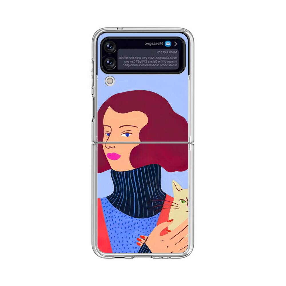 Dame mit Katze Samsung Galaxy Z Flip 4 Silikon Hülle● Sehr robust & langlebig