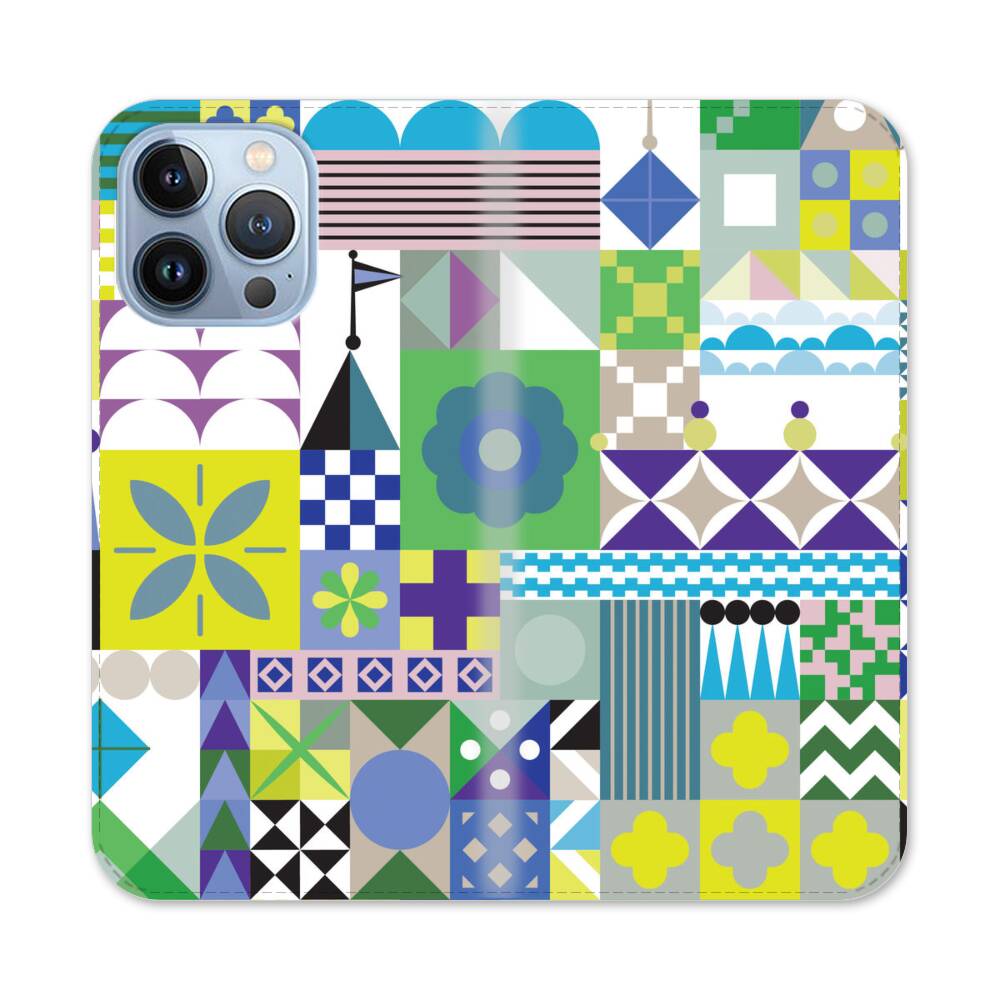 Geometrische Blumen Apple iPhone 13 Pro Flip Case● Seitlich klappbar