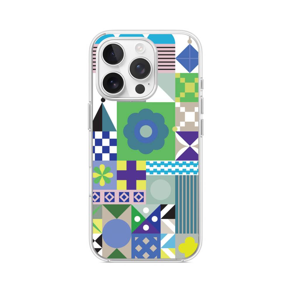 Geometrische Blumen iPhone 15 Pro MagSafe‑kompatible Silikonhülle mit Kamera‑Kickstand● Sehr robust & langlebig