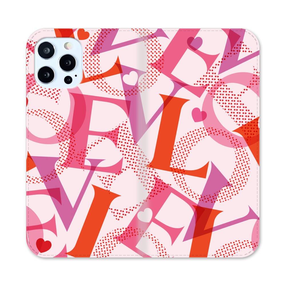 Pink LOVE Apple iPhone 12 Pro Flip Case● Seitlich klappbar