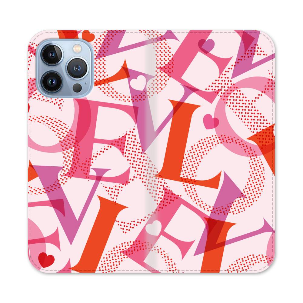 Pink LOVE Apple iPhone 13 Pro Max Flip Case● Seitlich klappbar