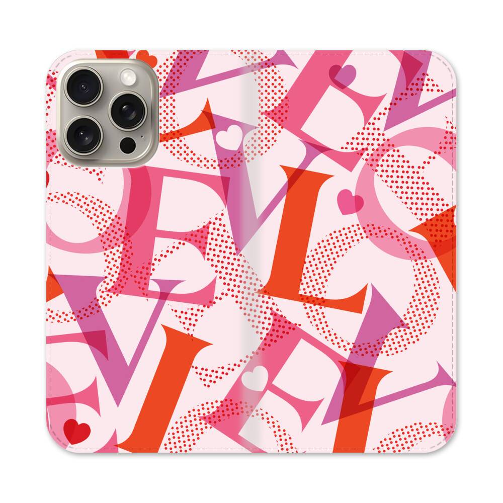 Pink LOVE Apple iPhone 15 Pro Max Flip Case● Seitlich klappbar