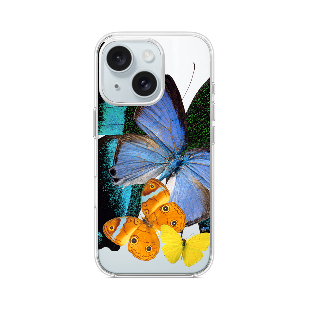Farbige Schmetterlinge iPhone 15 MagSafe‑kompatible Silikonhülle mit Kamera‑Kickstand● Sehr robust & langlebig