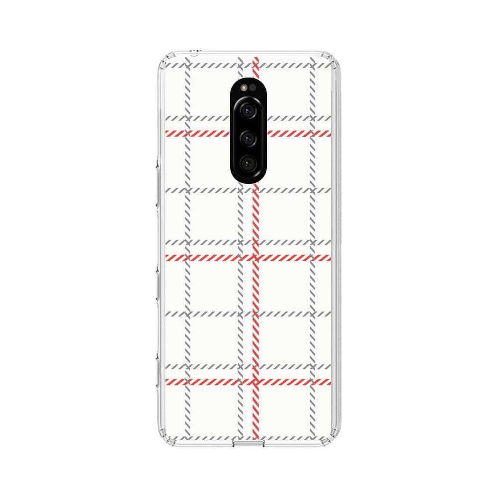 Karomuster in Rot und Grau Sony Xperia 1 Silikon Hülle● Sehr robust & langlebig