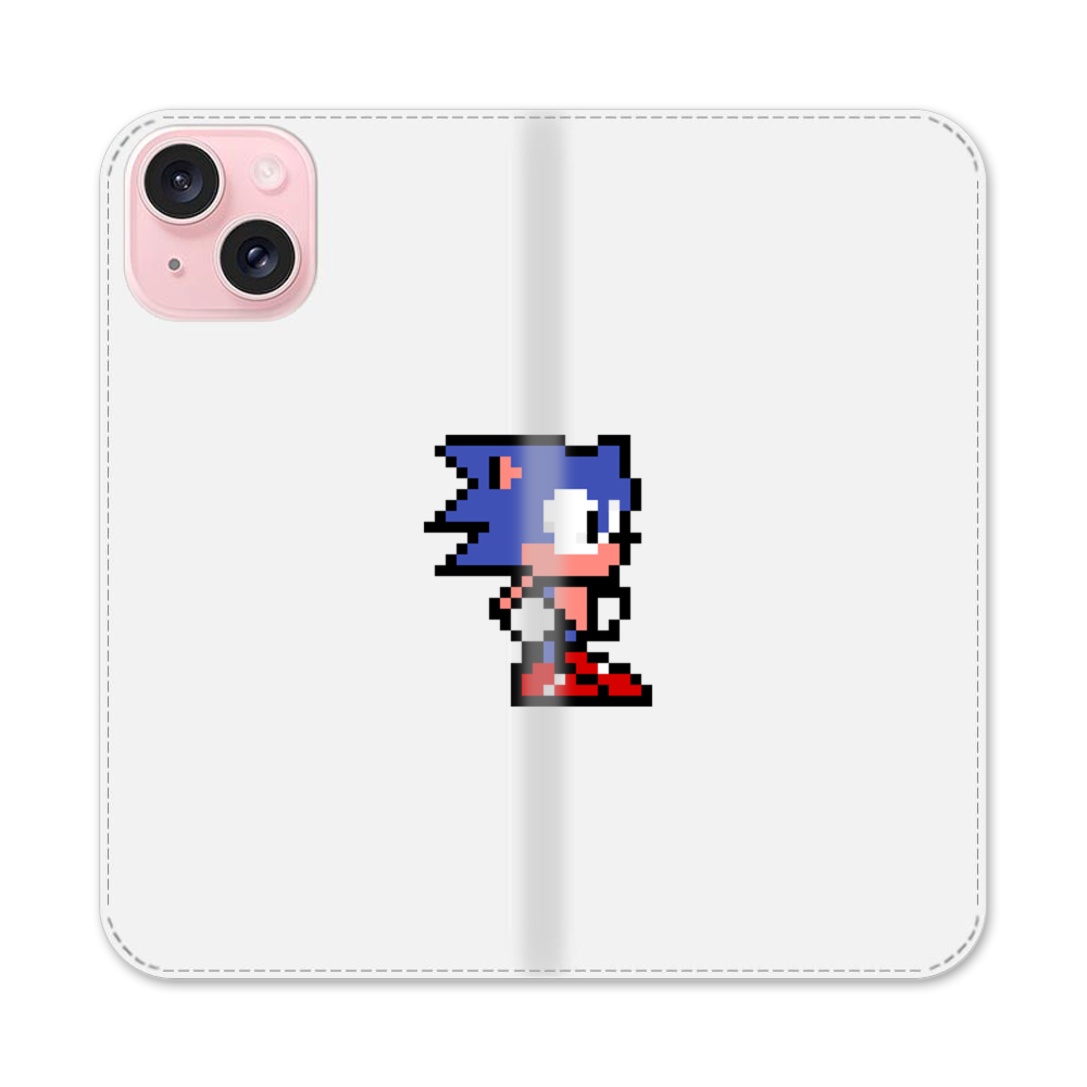 Verpixelt Blauer Igel Sonic Apple iPhone 15 Flip Case● Seitlich klappbar