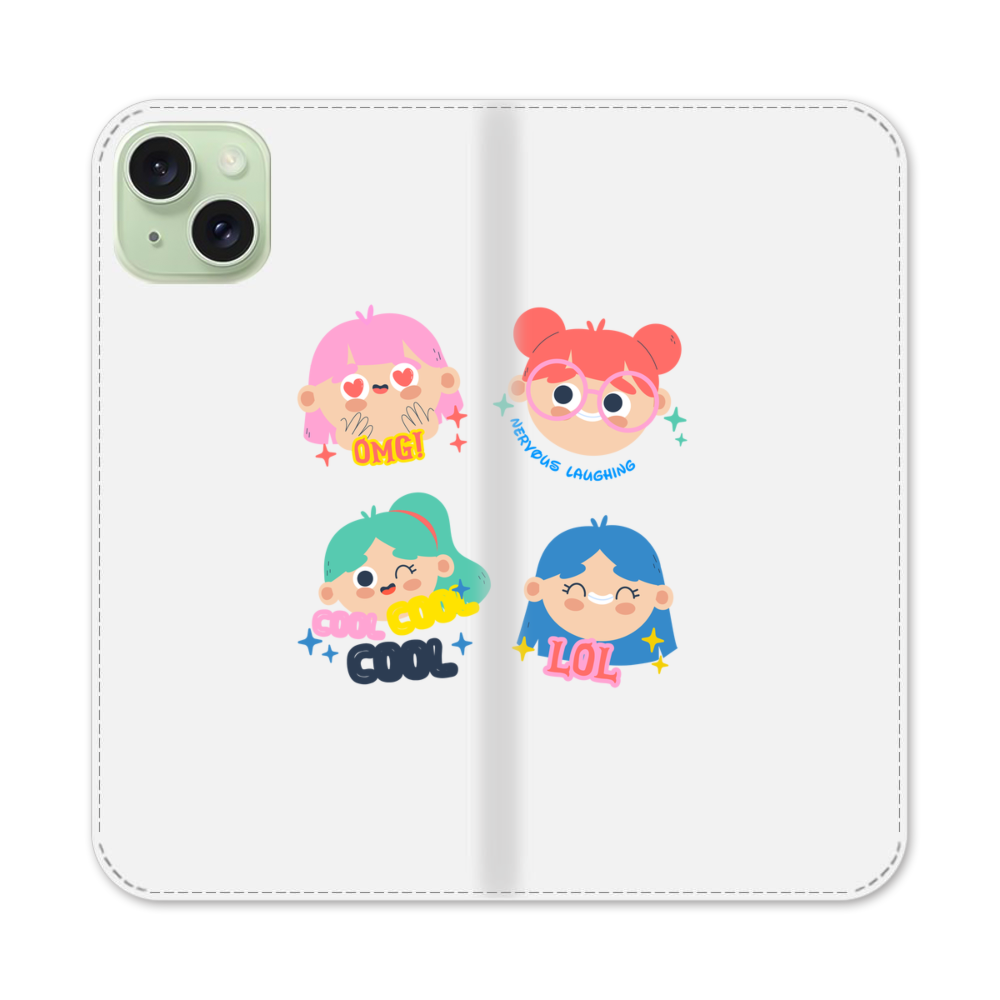 Fröhliche Mädchen Apple iPhone 15 Plus Flip Case● Seitlich klappbar
