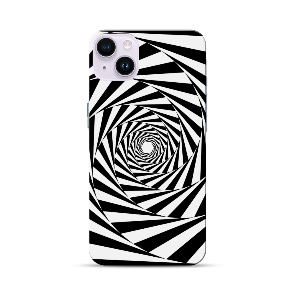 Der Schwarz Weiß Wirbel Apple iPhone 14 Plus Hülle● Rundum bedruckbar