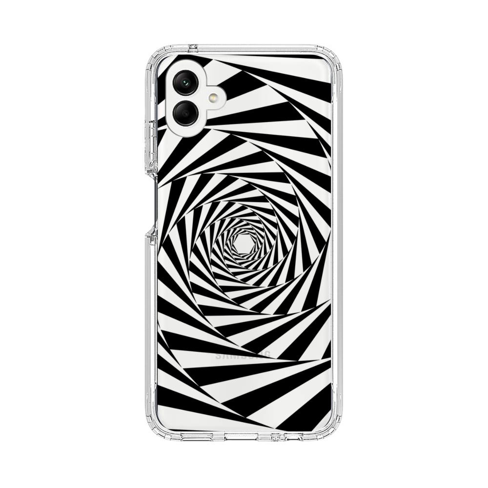 Der Schwarz Weiß Wirbel Samsung Galaxy A04 Silikon Hülle● Sehr robust & langlebig