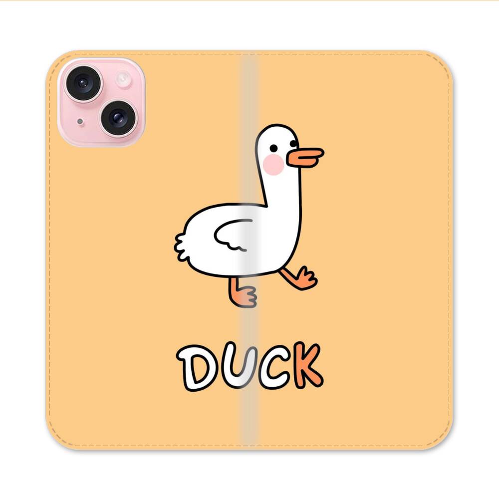 Comic Weiße Ente Apple iPhone 15 Flip Case● Seitlich klappbar