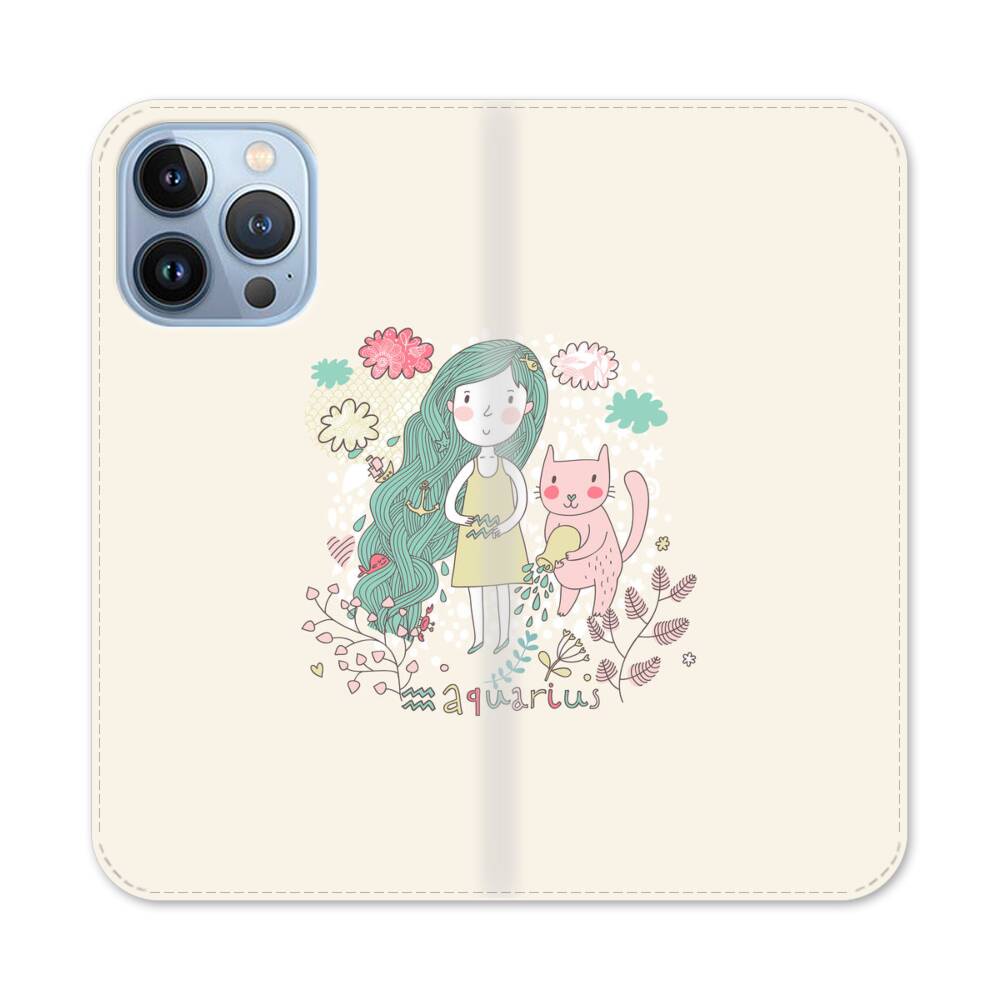 Kawaii Mädchen mit Katze Apple iPhone 13 Pro Flip Case● Seitlich klappbar