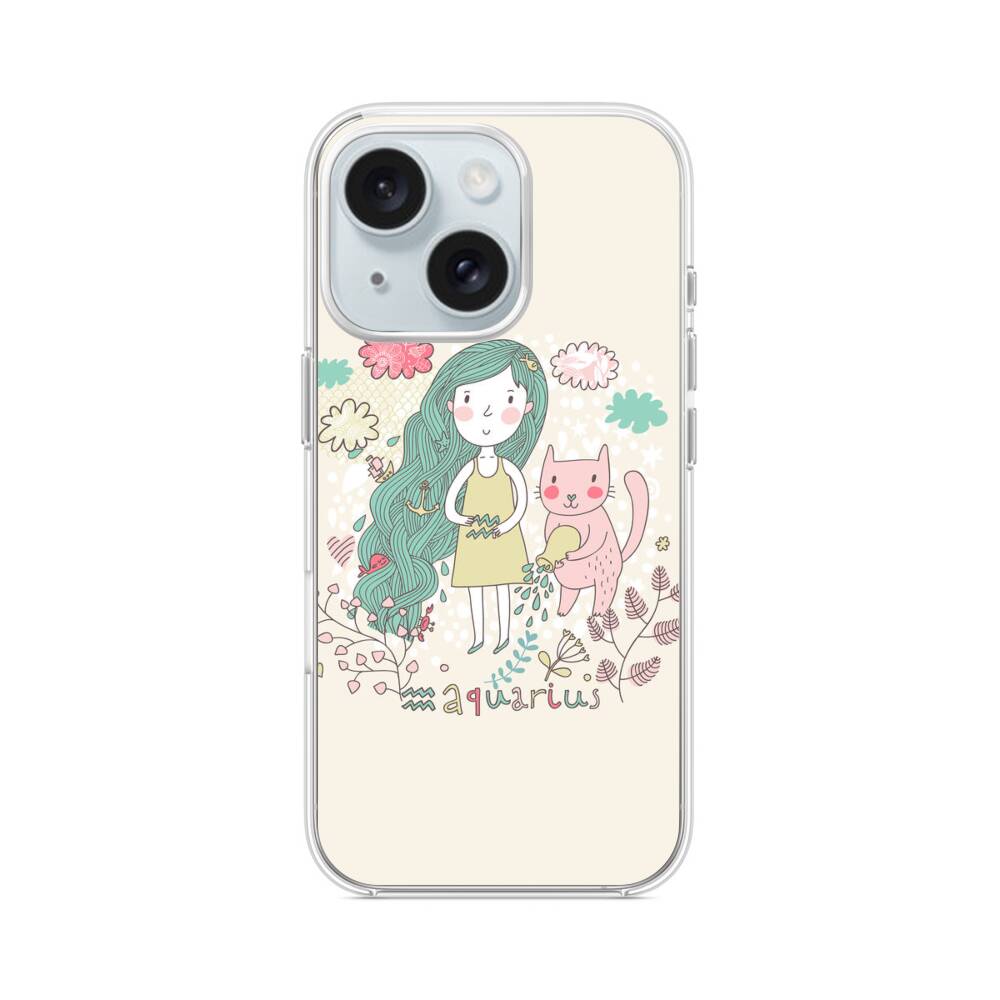 Kawaii Mädchen mit Katze iPhone 15 MagSafe‑kompatible Silikonhülle mit Kamera‑Kickstand● Sehr robust & langlebig