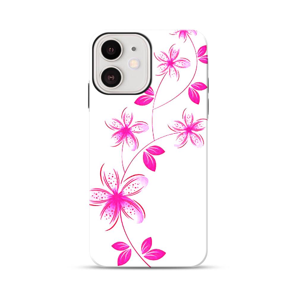 Rosa Blumen Apple iPhone 12 Hybrid Case● Rundum bedruckbar