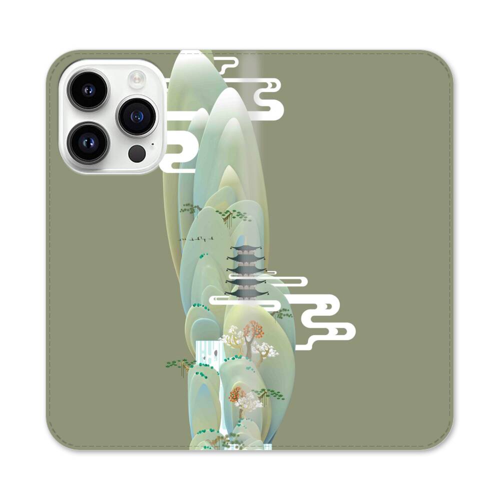Chinesische Berge Apple iPhone 14 Pro Flip Case● Seitlich klappbar