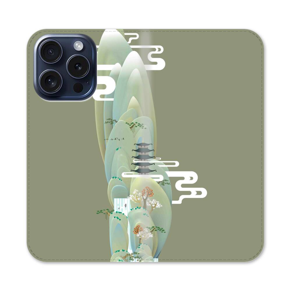 Chinesische Berge Apple iPhone 15 Pro Flip Case● Seitlich klappbar
