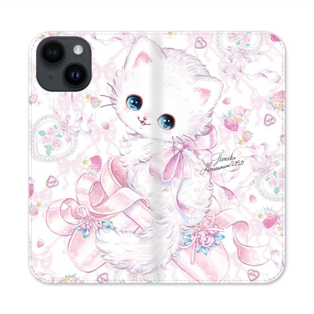 Kawaii Katze mit Seidenband Apple iPhone 14 Flip Case● Seitlich klappbar