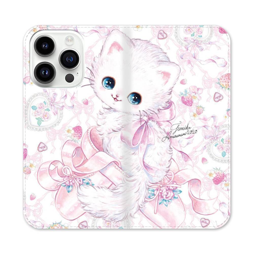 Kawaii Katze mit Seidenband Apple iPhone 14 Pro Flip Case● Seitlich klappbar