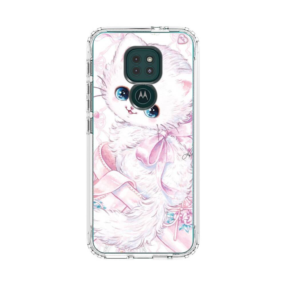 Kawaii Katze mit Seidenband Motorola Moto G9 Play Silikon Hülle● Sehr robust & langlebig