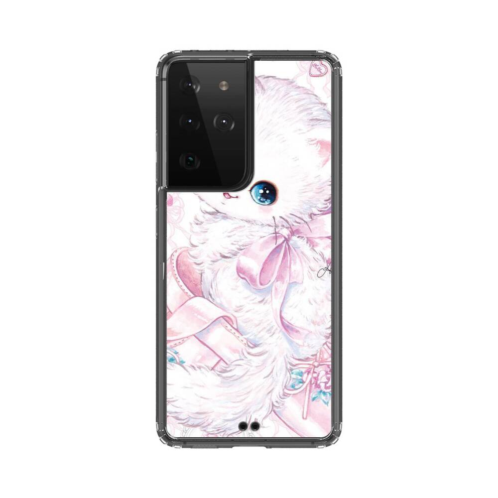 Kawaii Katze mit Seidenband Samsung Galaxy S21 Ultra Silikon Hülle● Sehr robust & langlebig