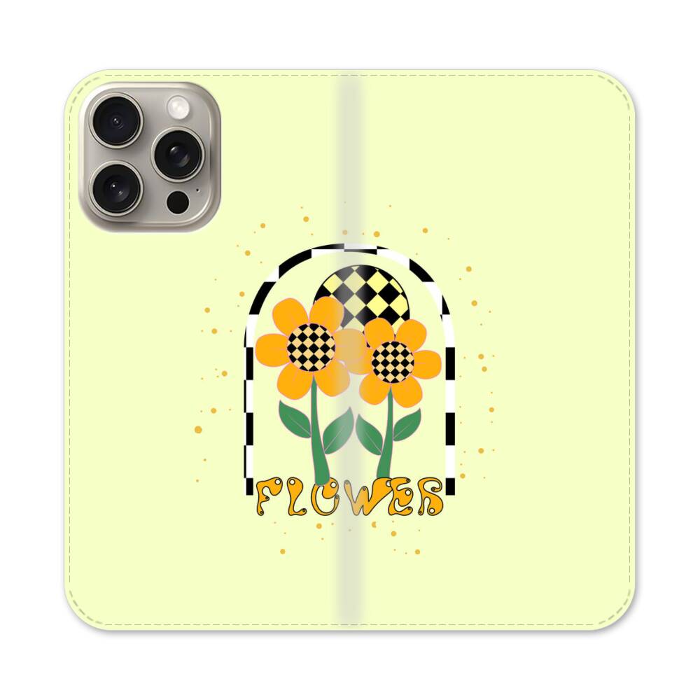 Retro Sonnenblume Apple iPhone 15 Pro Max Flip Case● Seitlich klappbar