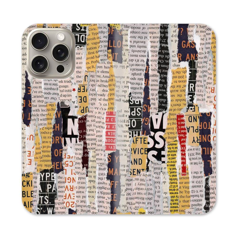 Abgeschnittene Papiere Apple iPhone 15 Pro Max Flip Case● Seitlich klappbar