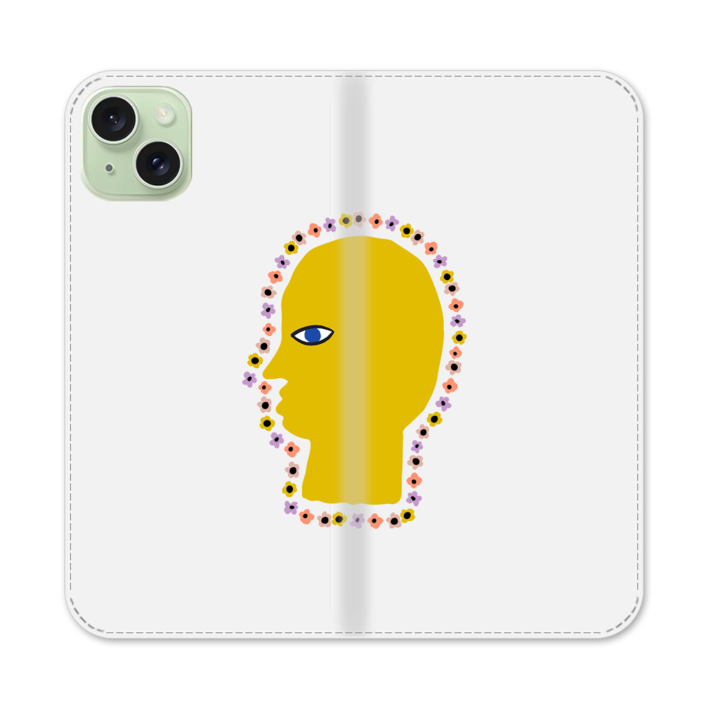 Süße Blumen um Gesicht Apple iPhone 15 Plus Flip Case● Seitlich klappbar