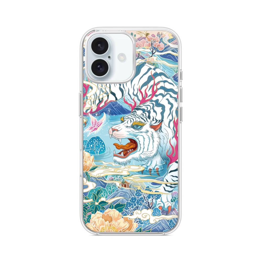 Der gebleichte Tiger iPhone 16 Plus MagSafe‑kompatible Silikonhülle mit Kamera‑Kickstand● Sehr robust & langlebig