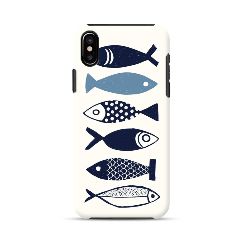 Indigo Fische iPhone XS Hybrid Hülle● Rundum bedruckbar