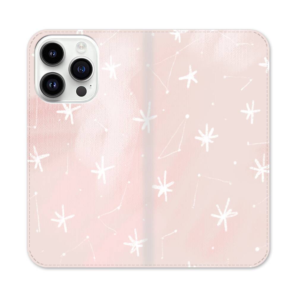 Nahtlose Pinke Schneeflocken Apple iPhone 14 Pro Flip Case● Seitlich klappbar