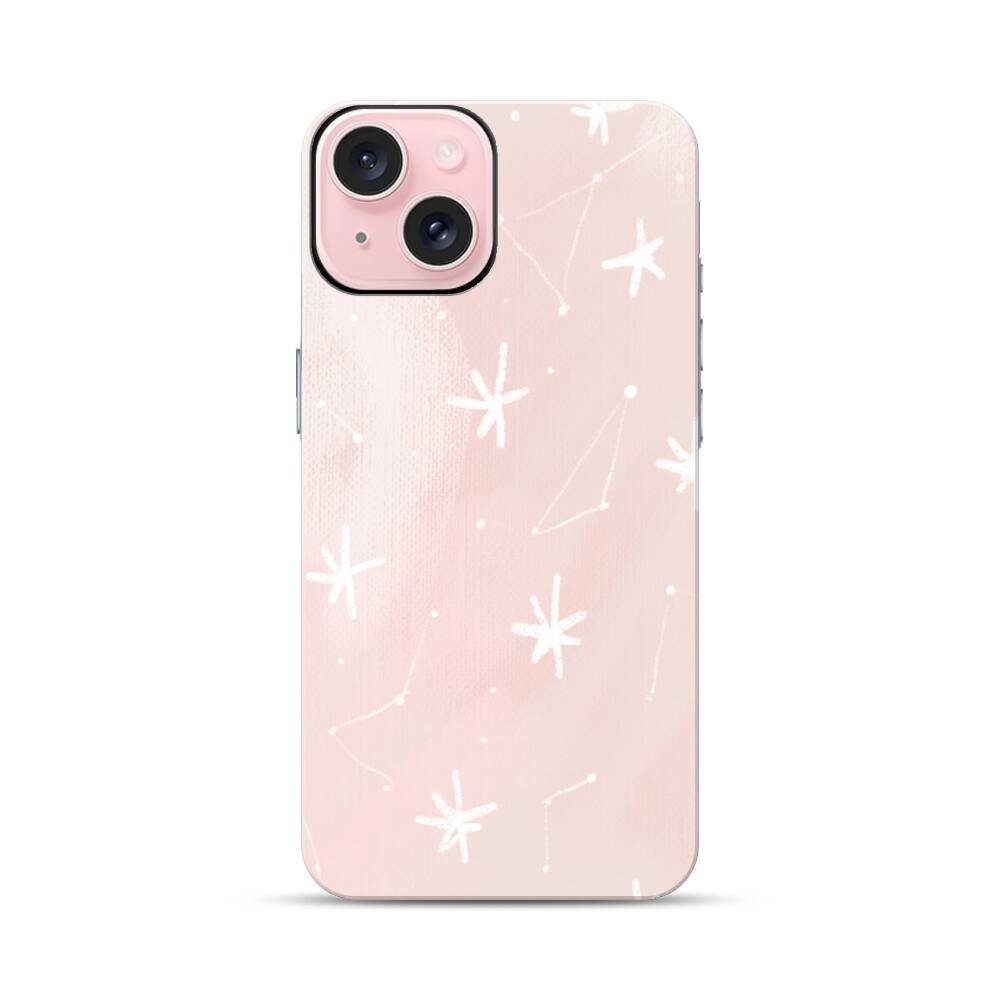 Nahtlose Pinke Schneeflocken Apple iPhone 15 Hybrid Case● Rundum bedruckbar